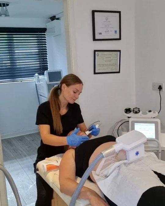 This is a unique, non-invasive, non-surgical treatment that uses a technology called cavitation to eliminate the fat cells in the area. The fat cells are 'destroyed' using a handpiece which uses heat and ultrasound to "melt away" stubborn fat cells in fatty areas. The destroyed fat cells are then broken down and liquidised enabling the fat cells to naturally leave your lymphatic system over a period of time.